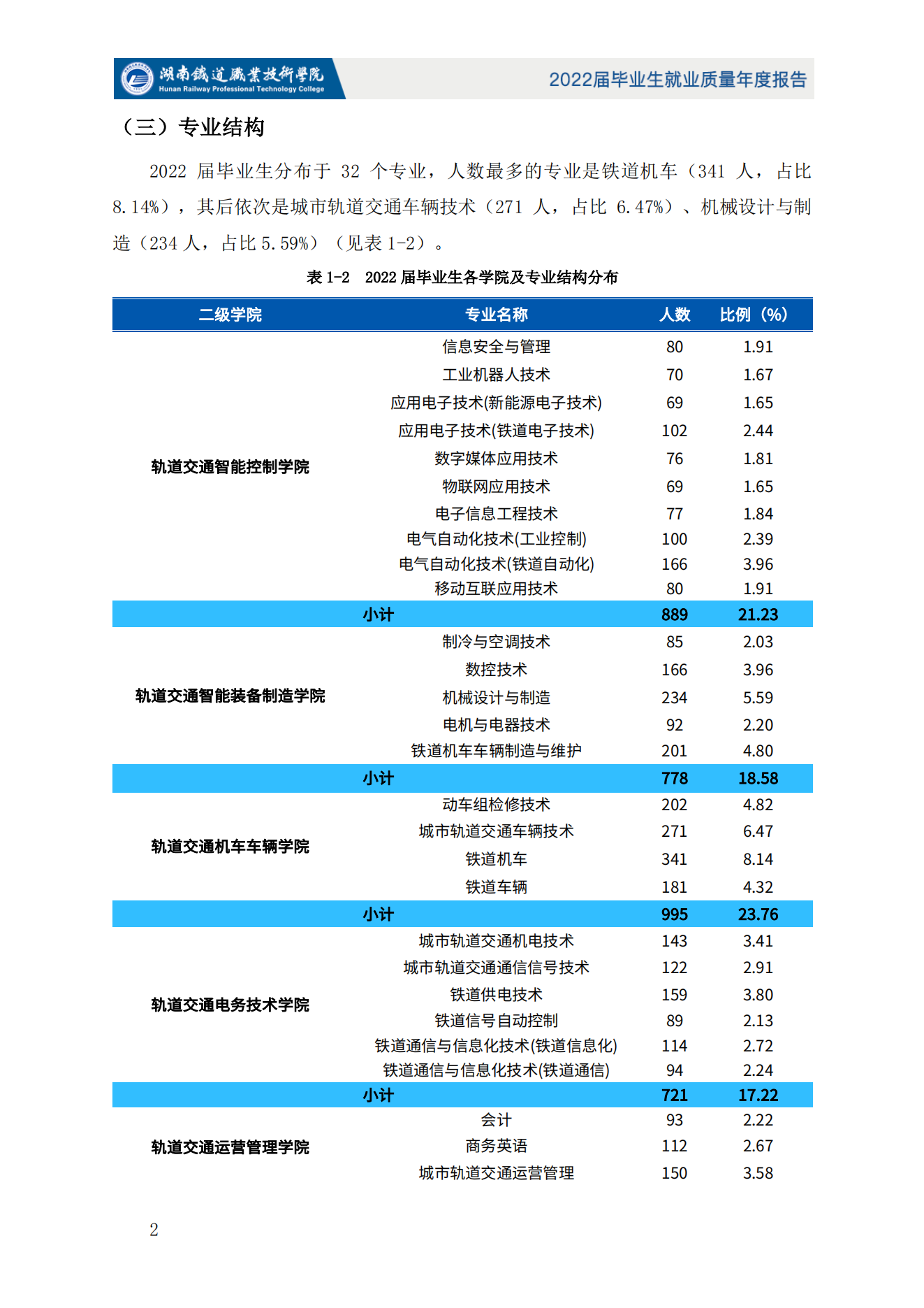 湖南铁道职业技术学院2022届毕业生就业质量年度报告